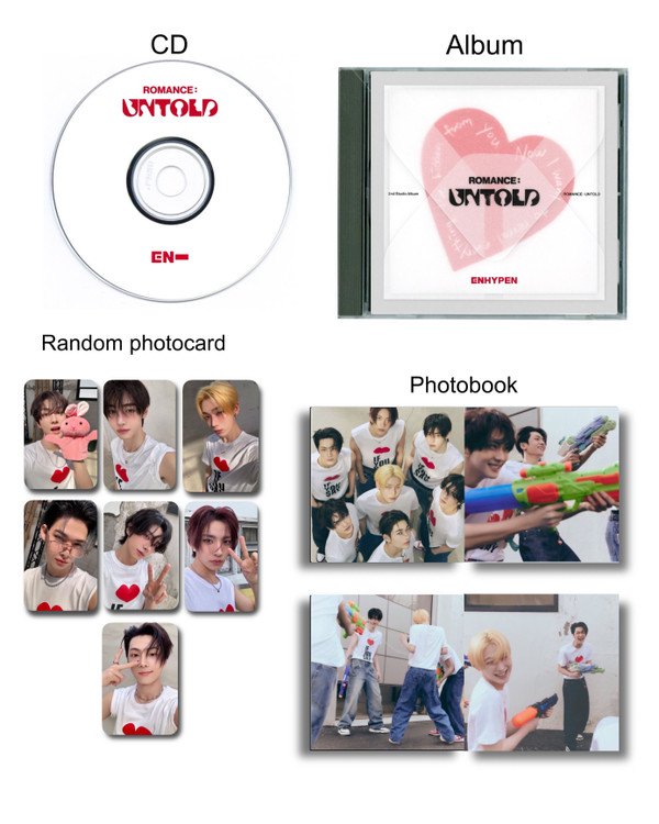 آلبوم jewel case romance:untold انهایپن محتویاتش شامل یک قاب شفاف پشت و رو کاور & سیدی شامل *موزیک ها* & فوتوبوک هشت صفحه ای (چهار ورق) & یک فوتوکارت رندوم