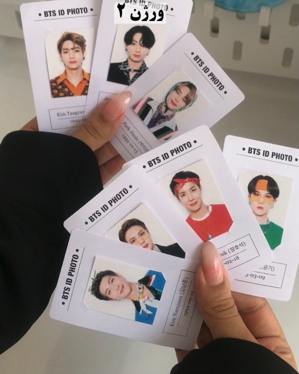 [هفت عکس سه در چهار به ازای هر عضو + کاور نگه دارنده که روش اسم و تاریخ تولد نوشته شده]
